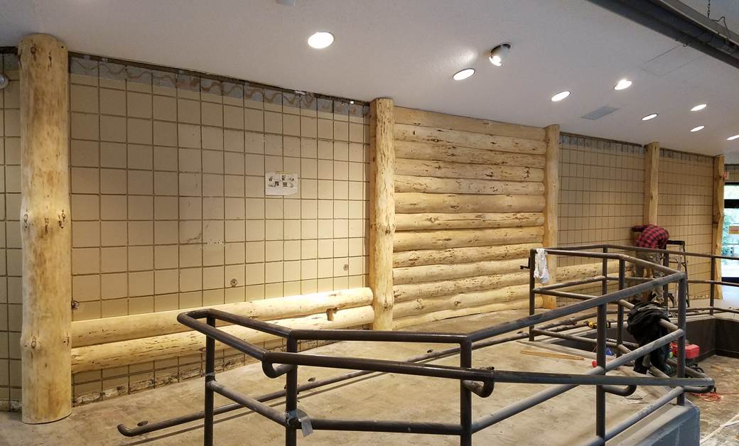 In 2017, Northern Log Supply worked with the Detroit Zoo and Builder Nick Piziali to renovate the otter and giraffe exhibits. For this project, the zoo wanted to renovate the otters’ 2,500-square-foot exhibit, which incorporates both indoor and outdoor living environments. This meant covering up the old, outdated tile on the walls with half log siding and installing wood paneling on the ceiling to create a more natural look indoors, as well as spruce up the outdoor oasis with log trim and corners.