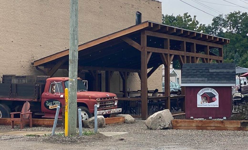 About three years ago, Sage Creek moved into its Memphis location, a historic Masonic Temple building built in 1887. The inside is beautiful, with seating at the bar and at tables. However, due to the COVID-19 pandemic, indoor dining was restricted in the state of Michigan, which meant the winery could no longer accommodate guests. To keep their winery open, the owners sought to build an outdoor seating area on the side of the building. A contractor referred Sage Creek to Northern Log Supply to supply and install the commercial wood products for the patio.