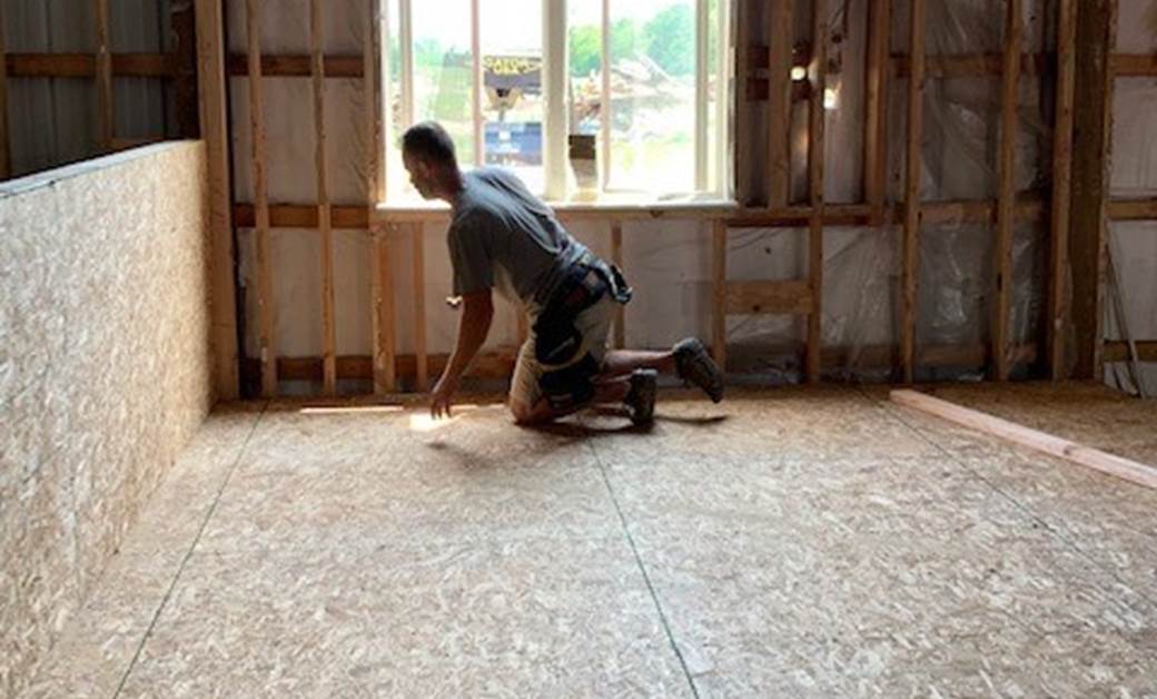 Circle-sawn barn wood siding on interior walls, prestained warm walnut and stone grey