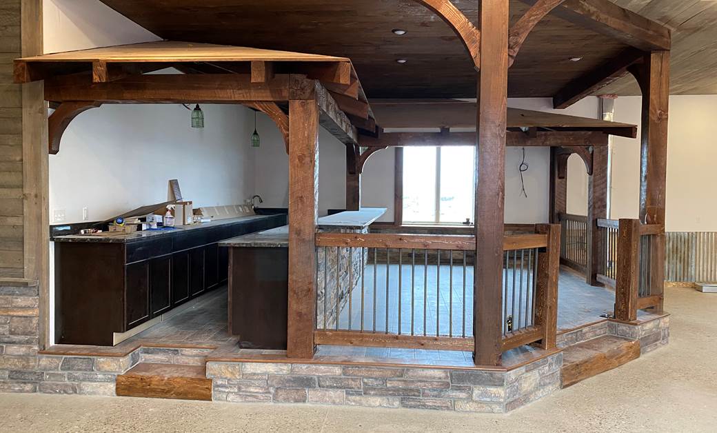 As a friend of the Northern Log Supply family, David leaned on owner Peter Green and his team of craftsmen to provide the design guidance and wood components, as well as help with installation, to renovate the barn. The project began in June 2019 and was completed during the winter of 2020. (In August 2019, a fire at the Northern Log facility caused the project to be temporarily put on hold.)